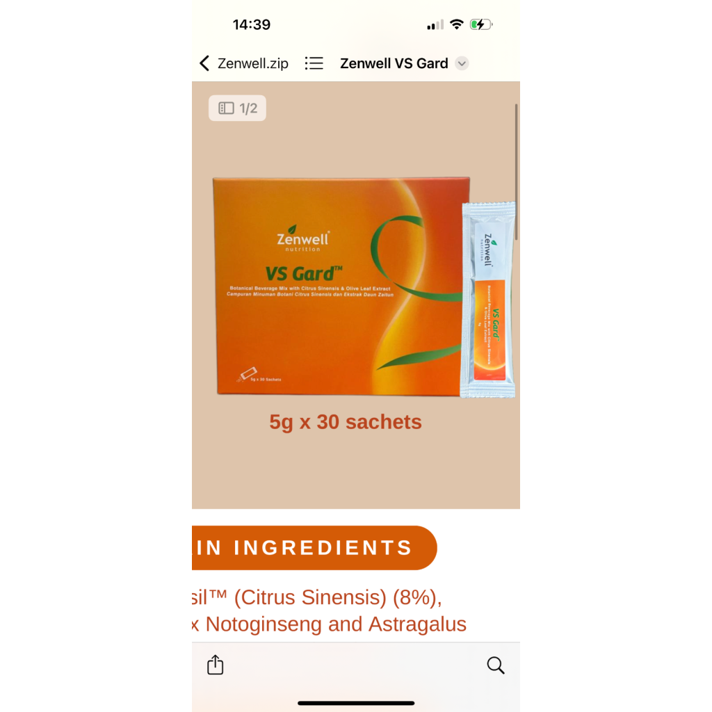 Zenwell Nutrition VS Card 燃脂安 5gX30條